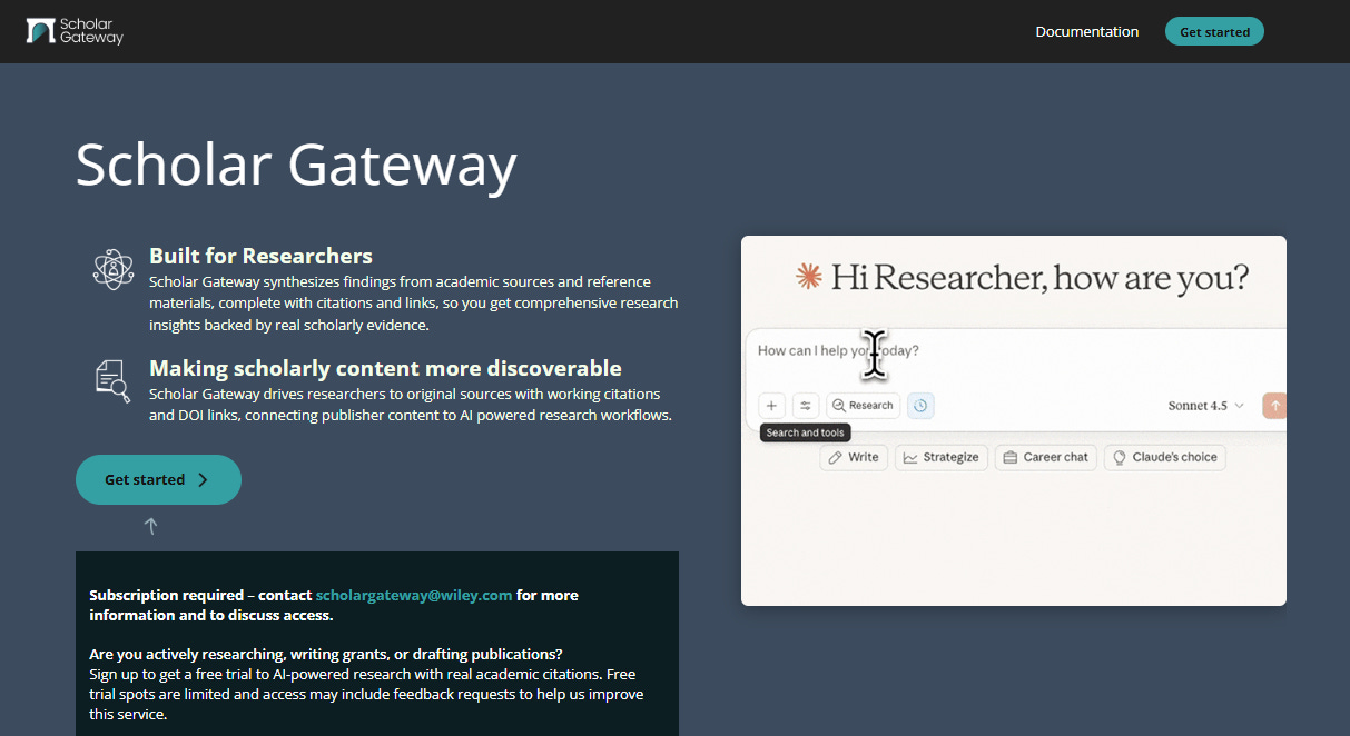 Wiley AI Gateway (listed as “Scholar Gateway” in the interface)