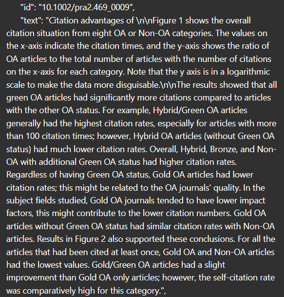The “id” field, is actually a combination of the article doi followed by _<chunknumber> which allows the LLM to combine chunks across the same article when needed.