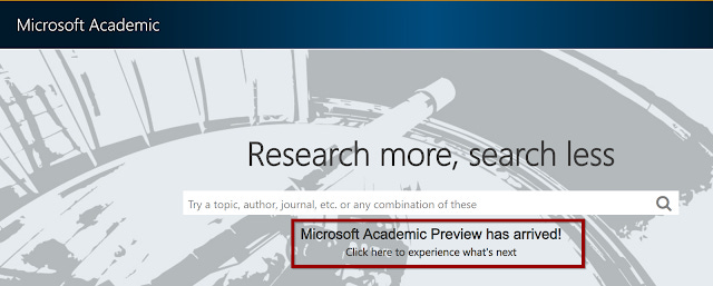 It seems like just a short time last year in May where I blogged about the new iteration of Microsoft's academic search dubbed "Microsoft Academic" which was then in beta and it eventually left beta at the end of the year. But it seems they are at it again, this time there is a Microsoft Academic Preview.