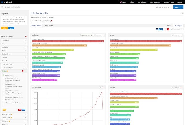 There are only two exceptions. One is Lens.org which combines datasets from Crossref, Pubmed and Microsoft academic. It is one of the two that allows you to filter to a topic say History and the analytics page will show the Top institutions, journals etc in that topic.