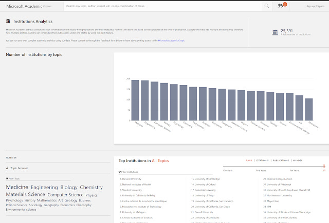 Microsoft academic preview - Microsoft's new rankings of journals, institutions, authors & conferences
