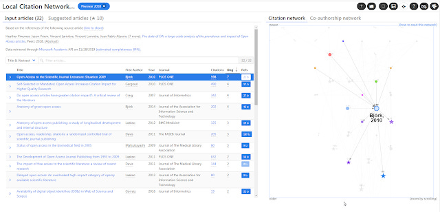 Lastly, the tool currently is fixed at 10 suggested articles while with Citation Gecko you can go beyond that and more importantly expand the network by setting suggested articles as seed/input articles to further find new articles. It is this iterative expansion that I think is important for exploration based tools.