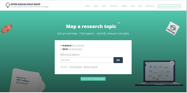 Open Knowledge Map is a non-profit organization that supports open science and open infrastructure. The tool itself allows you to do a search of Pubmed or BASE (Bielefeld Academic Search), and visualizes the results in clusters.