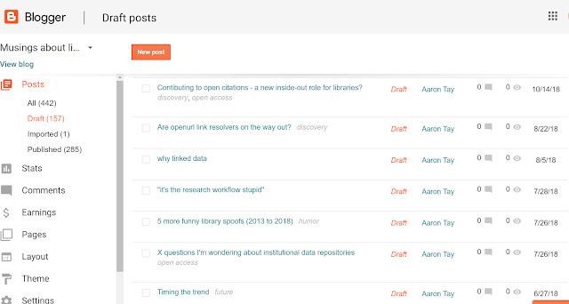 For example, I have a 2,000 word post articulating my thoughts on the usefulness (or lack of) on Linked data for libraries that has been around for 3 years because I'm not convinced I really understand it. Part of it is I have recently decided I needed to write a blog post on Wikidata first.