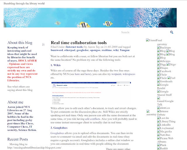 To put in some context , in 2009, we were near the tail end of the "Library 2.0" craze, which included library toolbars, social media and of course blogging. Kathryn Greenhill put 2007-2008 as the peak of Libraryland blogging, so I was never part of that crowd and over the years, the number of active librarian blogs began to decline long before even Google killed off Google Reader