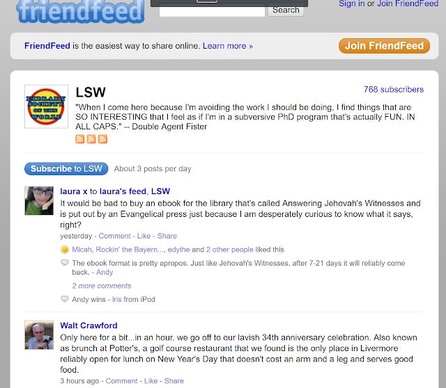 LSW on Friendfeed - via Wayback Machine
