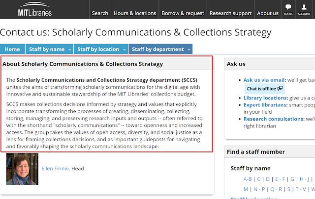 Heck, MIT Libraries even moved collections under scholarly communications.