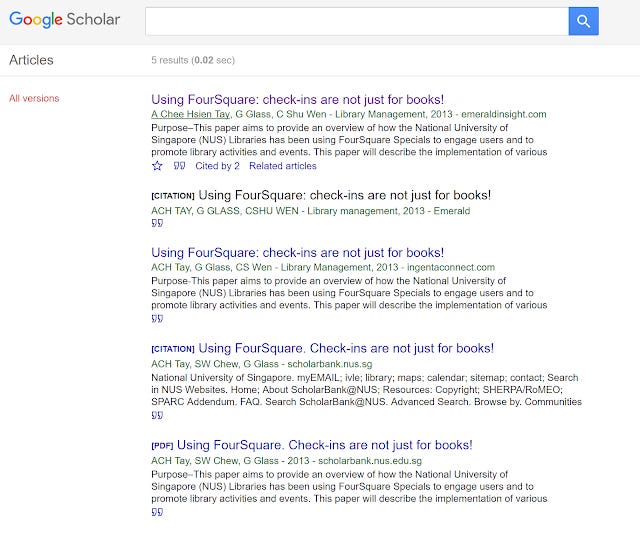 This is unlike Google Scholar where it is clustering/merging different versions of the same paper.