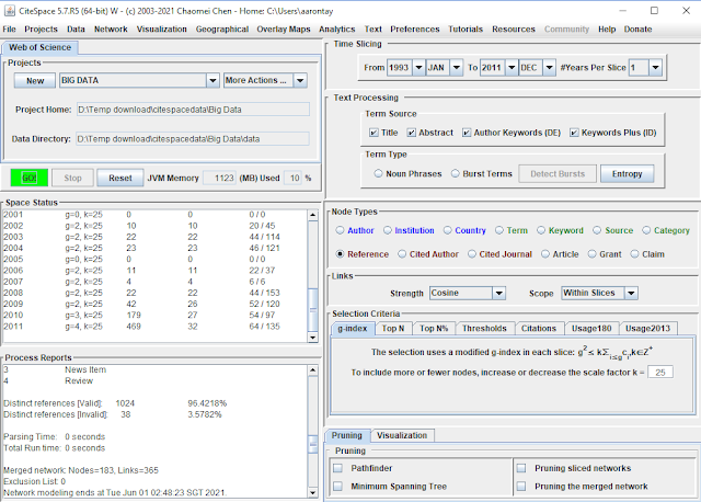 Starting Screen of Citespace - look at the complexity