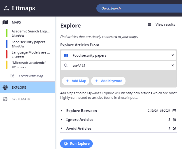 Litmaps explore function