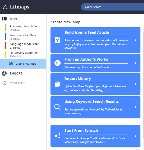 Multiple ways of inputting "seed" papers in Litmaps