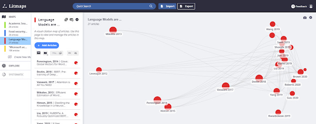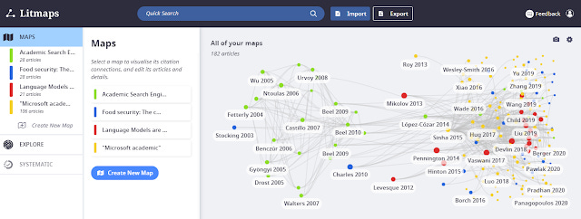 Currently, I find Litmaps' execution of visualizations the most intriguing, thanks the ability to create multiple overlapping brightly colored maps. The idea I think is to create maps to represent each cluster of research and check, explore for connections between them.