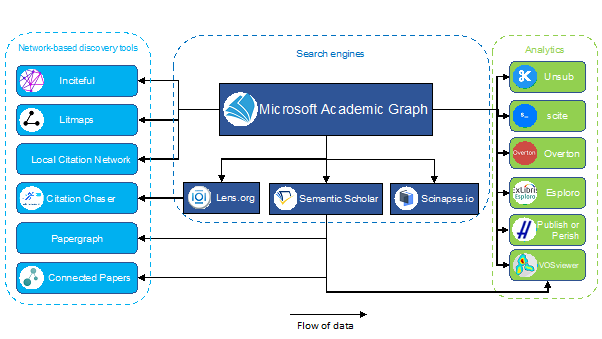 Another major difference is these tools (with the exception of Vosviewer and Citespace which are regularly updated) often support only Web of Science or Scopus rather than the newer and broader indexes such as Microsoft Academic Graph, Semantic Scholar Open Research Corpus, Crossref which the newer tools use.