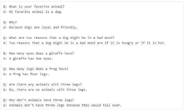 One thing to note is that I am not sure if using AIDungeon this way gets you exactly the same results as GPT-3 API, as the API output from GPT-3 model in AIDungeon might be tweaked somehow before displaying. For example I was unable to get exactly the same responses reported in the paper (setting differences?), though I do see the same tendencies and "magical' results.