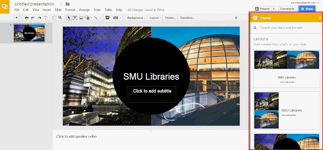 Google Slides - "explore" - Automatically creates layouts