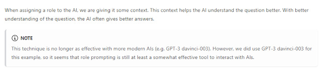 Another problem with such prompt engineering citations is they often are tested on older models than what is state of art because of a time lag. For example, some papers cited are using ChatGPT (GPT3.5) or even GPT3.0 models rather than GPT4 which is the latest at the time of writing of this post.