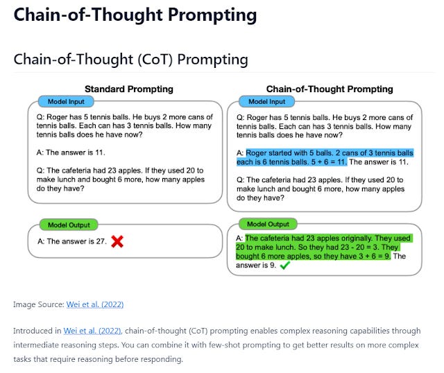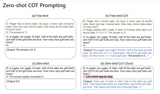 In fact, it was later found you could even skip the example and just prompt it to "Let's think step bv step" and the results would improve!