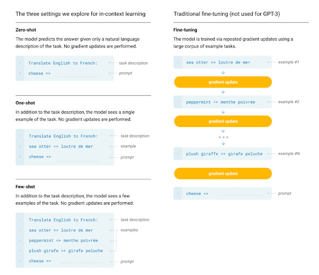 However, GPT-3 showed that when the models got big enough, one could improve results for some tasks by typing examples in the prompt in plain text and it would "learn" and do better, compared to not giving examples. This is known as in-context learning.