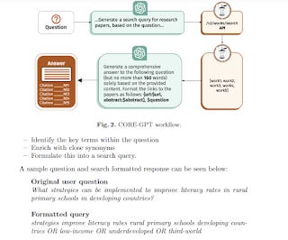 CORE-GPT uses prompt to convert user query to boolean search used in CORE search