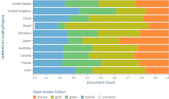 Using Web of Science as a sanity check, I got 17.7% of all Singapore output as Gold which matches the 18.1% from Gold OA, though I get a only 3.5% of hybrids from all output as compared to 8.3% in Lens.org. Differences can be attributed to the difference in the journal coverage of course.
