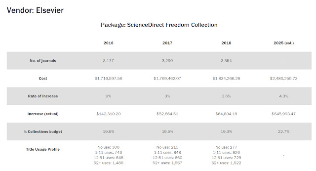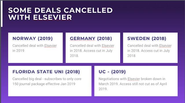 1. Quite a few libraries have cancelled "big deals" with Elsevier and other big publishers