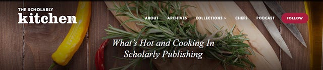 This is despite reading Scholarly Kitchen blog almost religiously. While it's true that posts from Scholarly Kitchen can be pretty biased , depending on the "Chef" who is posting, it is *the* place to get an insight into what publishers think and keep track of issues that impact Scholarly Communication.
