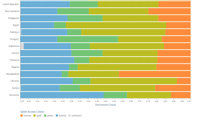 Also Scopus makes it difficult to get the statistic I need because it lumps all types of OA including hybrid, OA Journals, "promotional OA" into one.