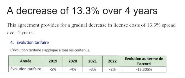 I believe and please correct me if I'm wrong, it works out to such that on the 4th year, the cost will be 13.3% discount off the subscription fees on 2018. For institutions that are used to 3-5% increases this is almost a miracle!