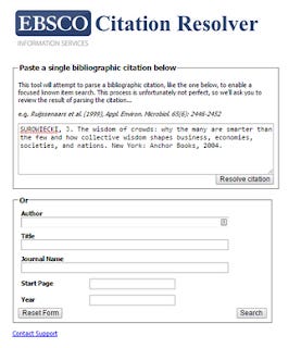 Typical EBSCO LinkSource Citation finder