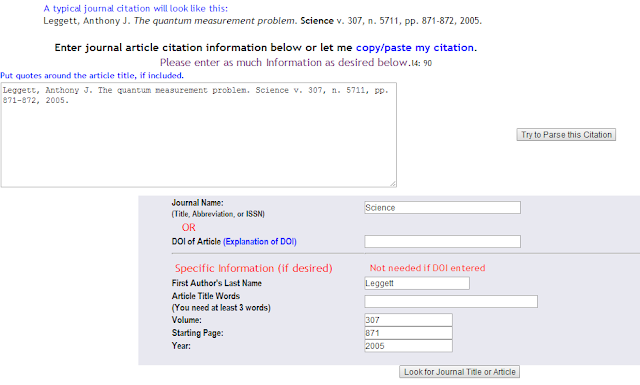 The idea of citation linker (sometimes known as citation finder or article finder) function was meant to be straight forward. You entered a reference and the library would hopefully link you to full text of an article via the library's openurl resolver.