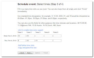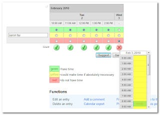 It's basically an online poll, you select dates, then enter time blocks , the rest you know.
