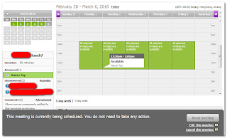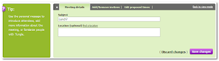 That said, you can use Tungle to schedule appointments, even with people who do not have Tungle accounts. It's quite intuitive to use you set up the meeting name, duration of meeting and other details. Enter the email addresses of people you want to meet, propose the time blocks you are free to meet (the calender also has details about your other events drawn from Outlook or Google calender, so you don't book a time you are unavailable) .