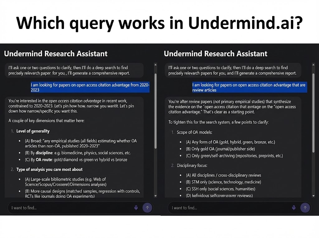 Yet in both cases, Undermind will usually not warn you what you are asking for isn’t supported and try anyway to produce a result without an error message.