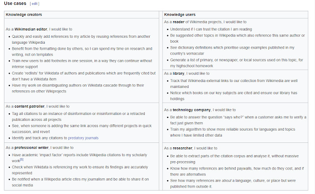 Edit: 23th Feb 2020 - Just after I posted this, news broke about a new Shared Citation database prosposal by Wikimedia, which extends the work of Wikicite. I'm still trying to fully grasp the full implications of the proposal but this and this might help. The envisoned use cases do look exciting and go beyond the current altmetrics we have on wikipedia (Crossref event data, various altmetrics providers) and covers more than just typical doi/journal content.