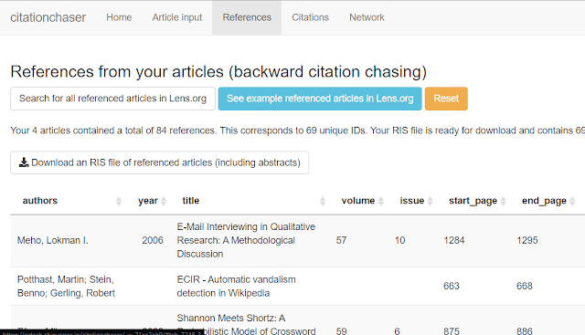 So what is citation chase? The tool is designed as a supplement to support systematic review by pulling in papers based on paper that have already been screened to be relevant. Citation Chaser uses the Lens API to extract either papers that cite or are referenced by these screened papers ,which can be then exported in RIS format for further deduping anf screening.
