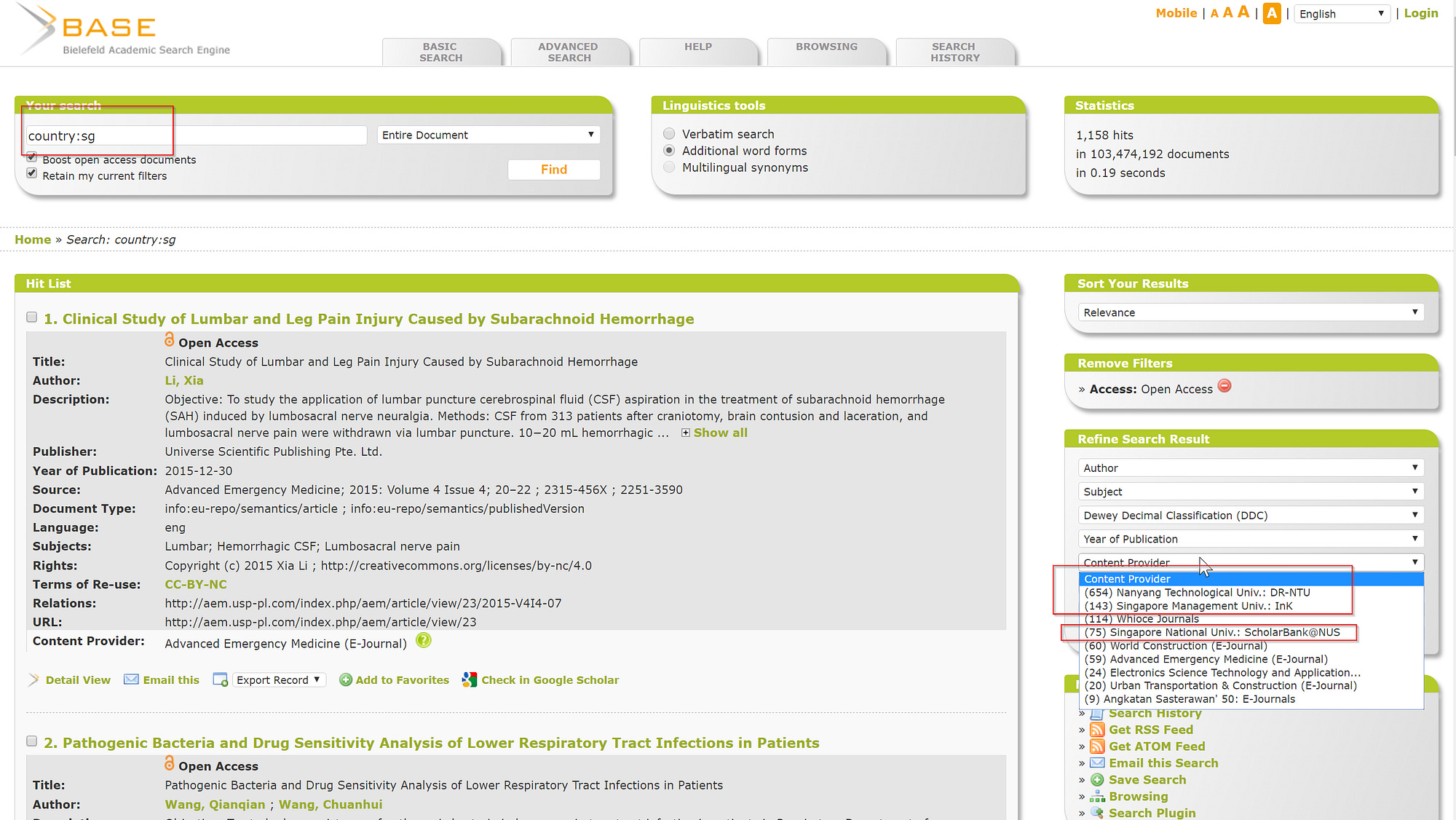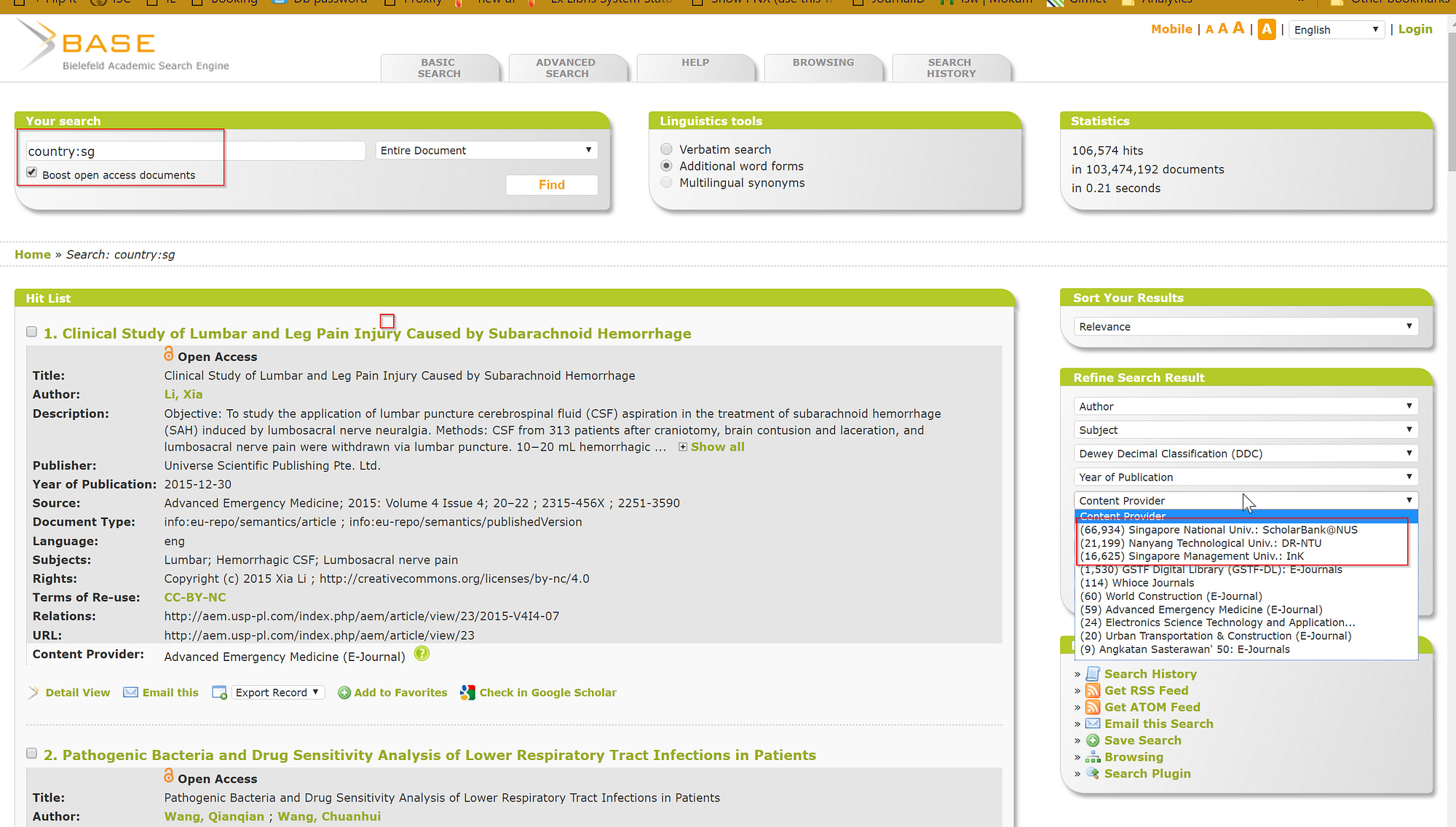 If you consider the case of Singapore Management University (disclosure again I am staff there), BASE is able to index practically every record in our Repository and yet only identifies 2.7% of our free full text. It’s in the same ballpark for the other Singapore repositories.