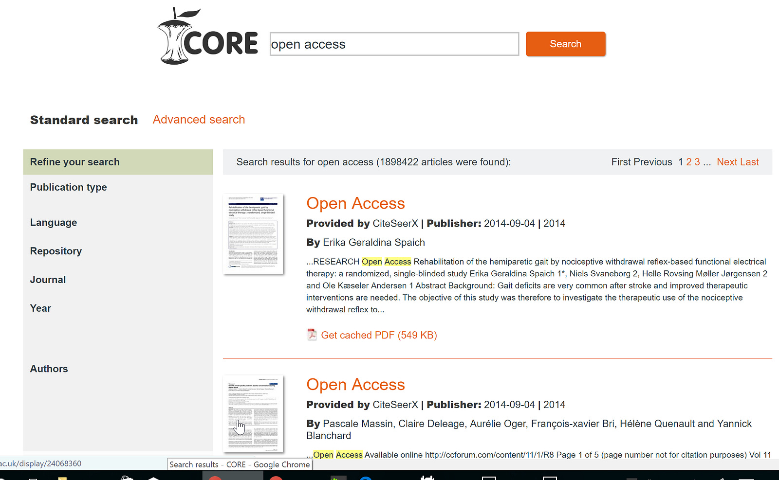 One area where BASE and CORE may differ from Summon and Primo is in that open access aggregators need to be able to tell if an article they harvest from a subject or institutional repository has free full text and this isn’t that easy.