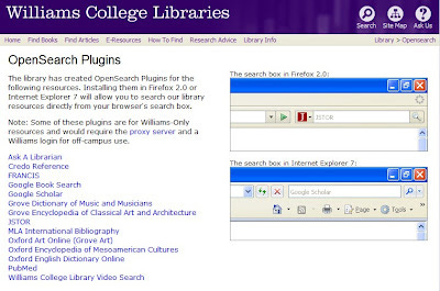 William College OpenSearch plugins allow direct searching from browser search
