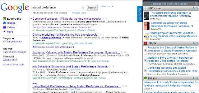 WebMynd is a new wrinkle on the old theme, as it overlays results from various sources on Google search results. In the example below, a user searching Google will also get results from LINC (Our next-generation library catalogue - III's Encore), JSTOR and Scopus.