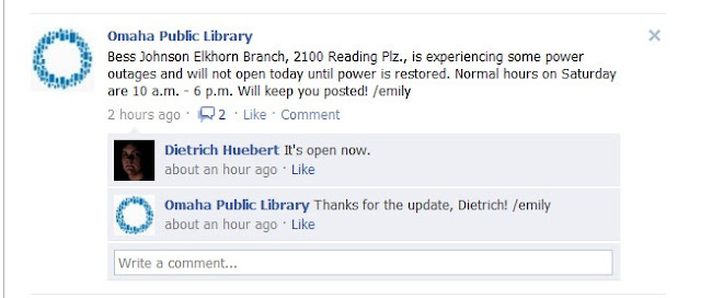 Omaha Public Library Facebook news in a member's Facebook stream