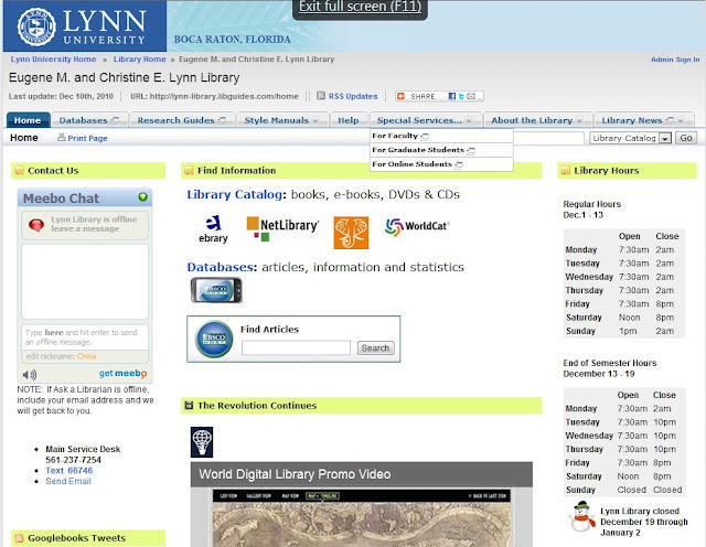 Example of LibGuide as library home page, Lynn University, Eugene M. and Christine E. Lynn Library