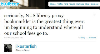 Now imagine one of our savvy members, he searches using Google Scholar and gains access to full-text with the help of the proxy bookmarklet, or library links program. He opts to receive news by following the library Twitter account & uses the Facebook App to do searches and reservation of books. SMSes inform him when a book is due.