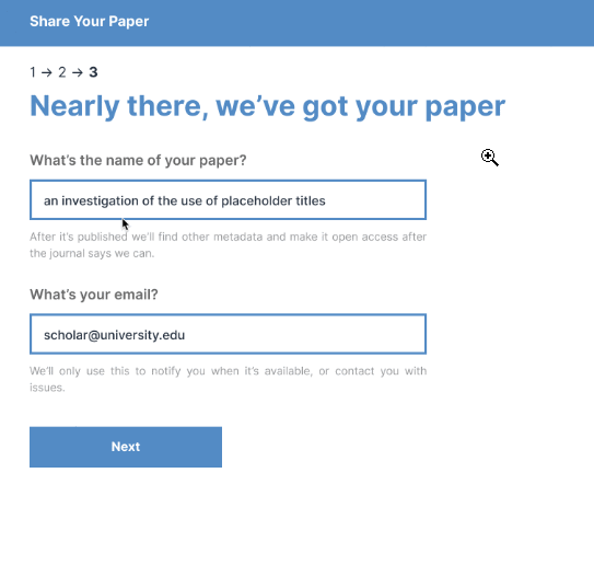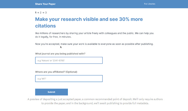 "Shareyourpaper.org will allow libraries to significantly improve the deposit workflow and enable author-driven self-archiving without technical expertise or repository migration. This new tool will provide an institutional deposit portal, with direct deposit links for your repository and notifications of deposit. Instead of requiring complex repository integrations, shareyourpaper.org will deposit papers into Zenodo (an open-source repository operated by CERN) then support libraries pulling articles into their existing repository through bulk ingest and other mechanisms".