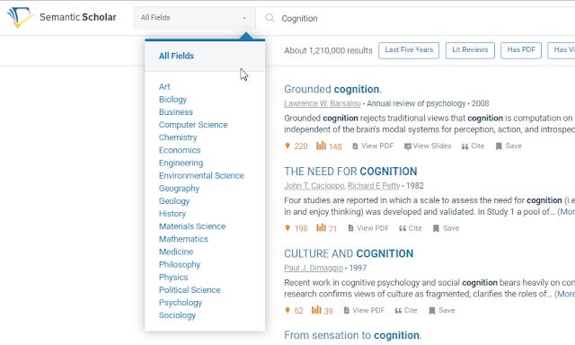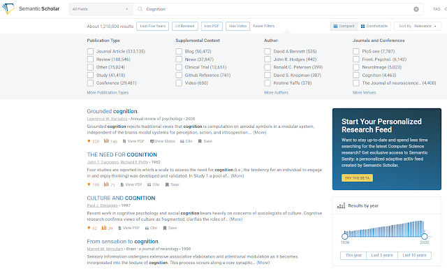 This is exciting news as Semantic Scholar which was first launched in 2015 with many interesting features such as citation sentiments (allowing you to tell why a cite occurred - whether it was for background, a cite of methodology or cite for result) but used to cover mainly Computer Science and Biomed domains only but now supports most major disciplines from Art to Sociology.