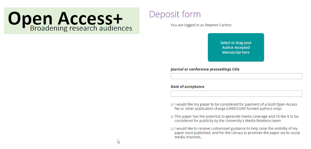 That said, some institutions do have excellent systems to making depositing as easy as possible. Take University of Manchester's deposit form.