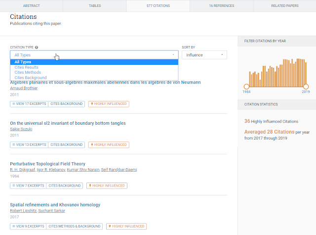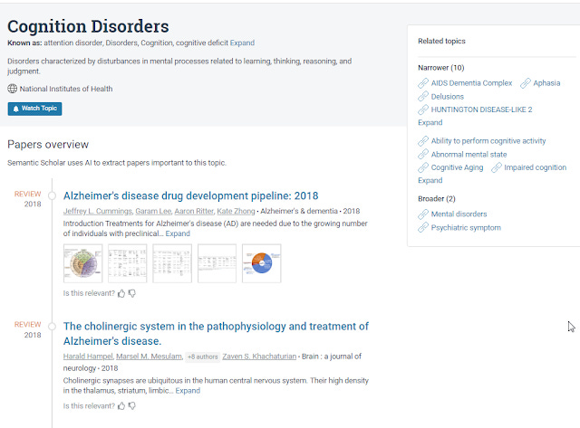 This is of course similar to "old school databases" or rather abstract and indexing databases with proper thesaurus but the cool thing is all these topics are auto-extracted by Semantic Scholar using latest Machine learning/NLP techniques. I'm really curious how this compares to Microsoft Academic own "Field of Study" topics which are also auto-generated and hierarchical .