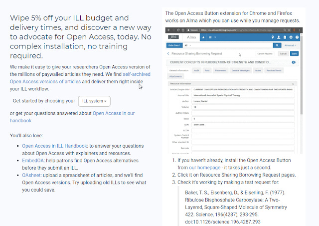 Instructions for Open Access Button working on Alma resource sharing requests page