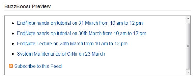 The RSS feed is generated using Blogger/Blogspot , clicking on each entry will bring you to the appropriate blog entry. Champlain College library has opted to use the widget from Yourminis to display the feed (there are many other alternatives). The nice thing of this widget platform is that users can easily add this widget to other platforms (blogs, social networks like facebook, netvibes etc) but unofficially the service is shutting down soon.