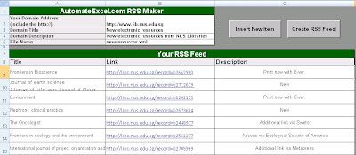 If your library is like mine, a lot of data is generated in Excel format. I found this interesting excel template that uses macros to automatically convert excel into RSS.