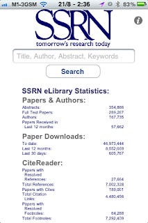 Search alerts, Citation alerts (push) SSRN (iPhone app)"Title, author, abstract, Keyword"NoneNoneNoneNoneFree No rotation